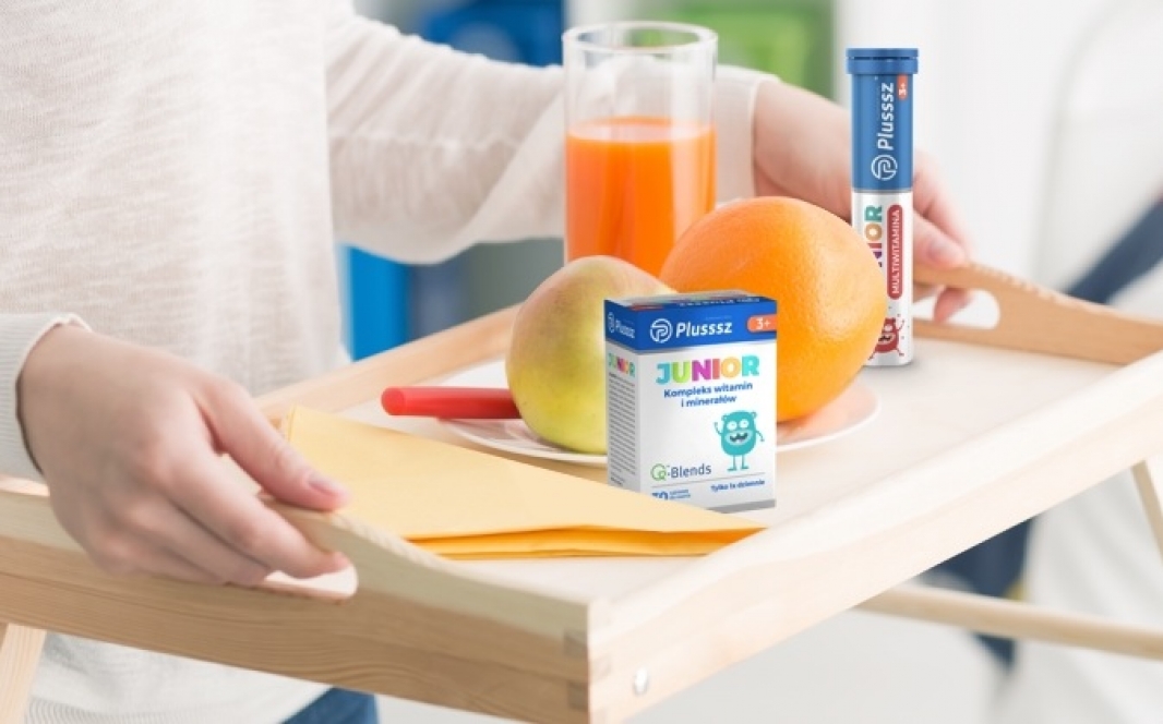 Sen i ruch to jednak nie wszystko. Po chorobie organizm dziecka jest osłabiony i wymaga solidnej dawki witamin. Ważna jest dieta bogata w warzywa i owoce, które dostarczą mu witamin - A (znajdziesz ją przede wszystkim w czerwonych i żółtych warzywach i owocach), witamin z grupy B (dostarczą jej m.in. orzechy) oraz witaminy C (obecna m.in. w natce pietruszki, cytrusach, kiwi). Wspólnie pomogą one przywrócić naszemu dziecku pełnię sił. Niestety większość małych pociech nie przepada za surowymi warzywami. Dlatego warto pomyśleć o uzupełnieniu codziennej diety suplementami. Doskonale sprawdzi się w tym przypadku Multiwitamina od Plusssz Junior. Tabletka musująca pozwoli na przyrządzenie pysznego napoju pełnego witamin, który z pewnością przypadnie Twojemu malcowi do gustu.