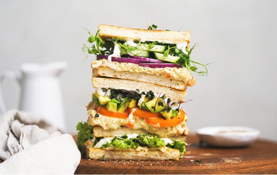 Lekko opiecz dwie kromki ulubionego chleba (w tosterze lub na patelni), a następnie posmaruj jedną z nich majonezem. Następnie układaj na niej plasterki ogórka, kiełki, jajko, awokado, plasterki sera i jarmuż. Na wierzchu połóż drugą kromkę chleba posmarowaną wcześniej majonezem.