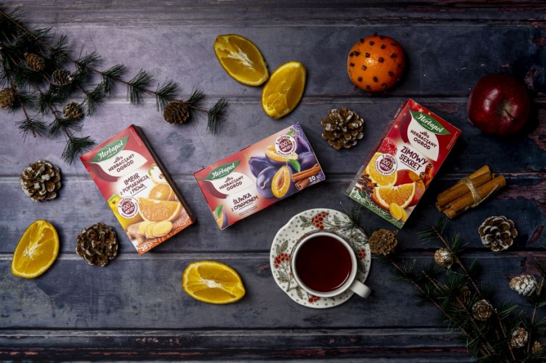 Do tej pory w linii Herbaciany Ogród do wyboru były dwie zimowe herbatki – Zimowy Sekret oraz Imbir z pomarańczą i pigwą. Pierwsza z nich – jak sama nazwa wskazuje - to doskonała propozycja na mroźne dni. Duże kawałki owoców, skórka pomarańczy i szczypta korzennych przypraw, takich jak cynamon, imbir i goździki, tworzą mocno rozgrzewającą kompozycję. Po herbatkę Imbir z pomarańczą i pigwą mogą zaś z pewnością sięgnąć amatorzy egzotycznych połączeń, bo jej składniki zapewniają orzeźwiający smak oraz urzekający cytrusowy zapach.