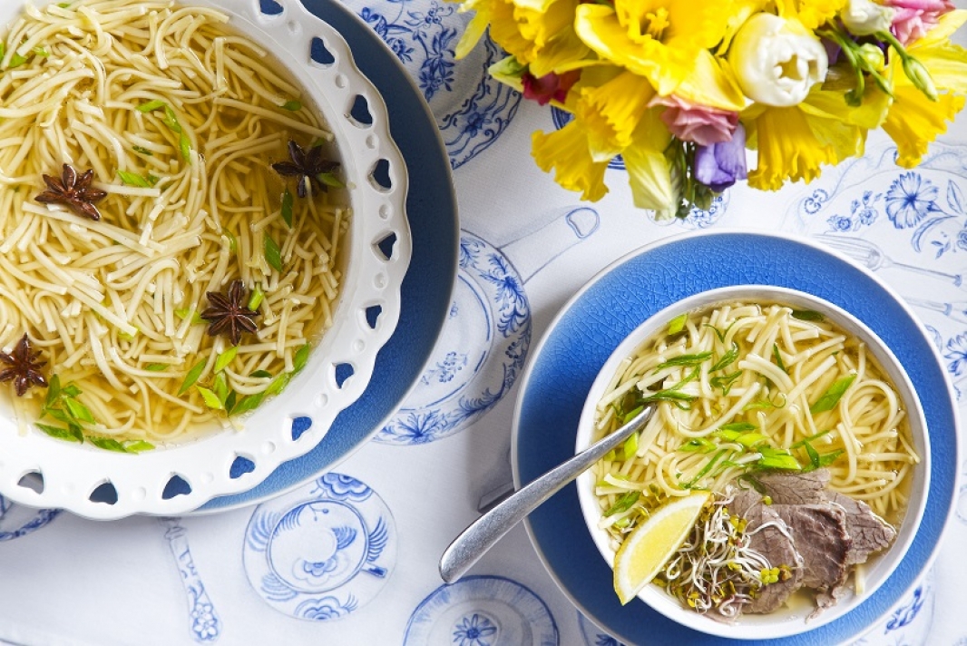 Orientalny rosół z jajecznym makaronem