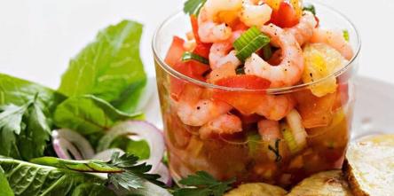 Koktajl z norweskich krewetek marynowanych w grejpfrutach, podawane z plastrami ziemniaków. Prosta i niecodzienna przystawka.