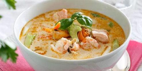 Zupa rybna z małżami, krewetkami, łososiem i dorszem - danie pełne wartości odżywczych. Świetnie sprawdzi się jako pierwsze danie!