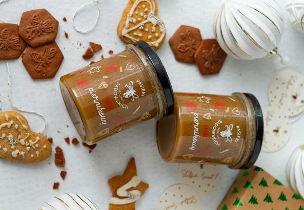 Bardziej świątecznego miodu nie wymyśliłby nawet sam Święty Mikołaj. Szczypta autorskiej przyprawy piernikowej zamieniła naturalny miód wielokwiatowy w niezwykły przysmak – miód piernikowy z Pasiek Rodziny Sadowskich.