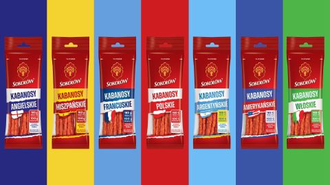 Sokołowskie Kabanosy międzynarodowe cieszą się od lat wyjątkową popularnością. Teraz zyskały nowe, wyraziste opakowania, czytelnie komunikujące poszczególne wersje smakowe. Te kabanosy są inspirowane podróżami kulinarnymi, a oryginalny smak zapewniają im specjalnie dobrane kompozycje przypraw. Dzięki temu, każdy z wariantów doskonale oddaje charakter regionu, który reprezentuje.