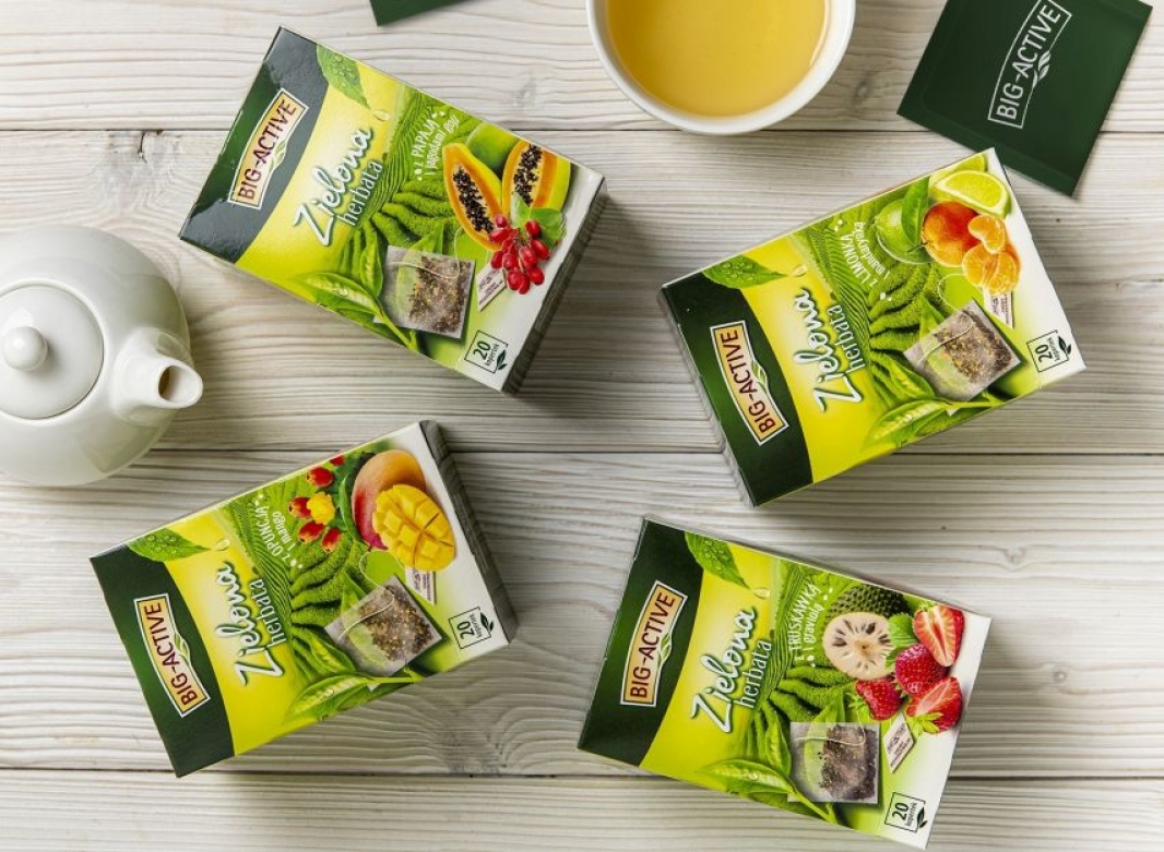 Zielone herbaty Big-Active to przede wszystkim zaskakująca feeria smaków. Podstawą każdego wariantu są duże, suszone liście herbaty, które stanowią idealną bazę do ciekawych dodatków: egzotycznych (i nie tylko!) owoców oraz płatków kwiatów. Każda z tych herbat została zamknięta w przezroczystej torebce, która jest schowana w osobną kopertkę – dzięki temu ulubiony smak można mieć zawsze przy sobie.